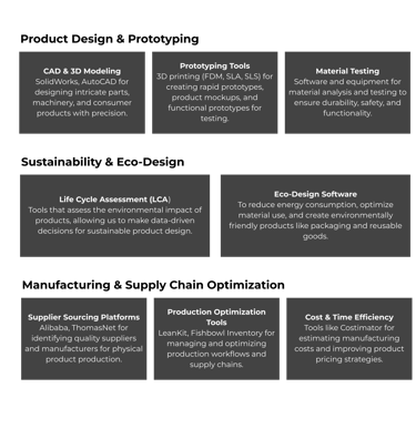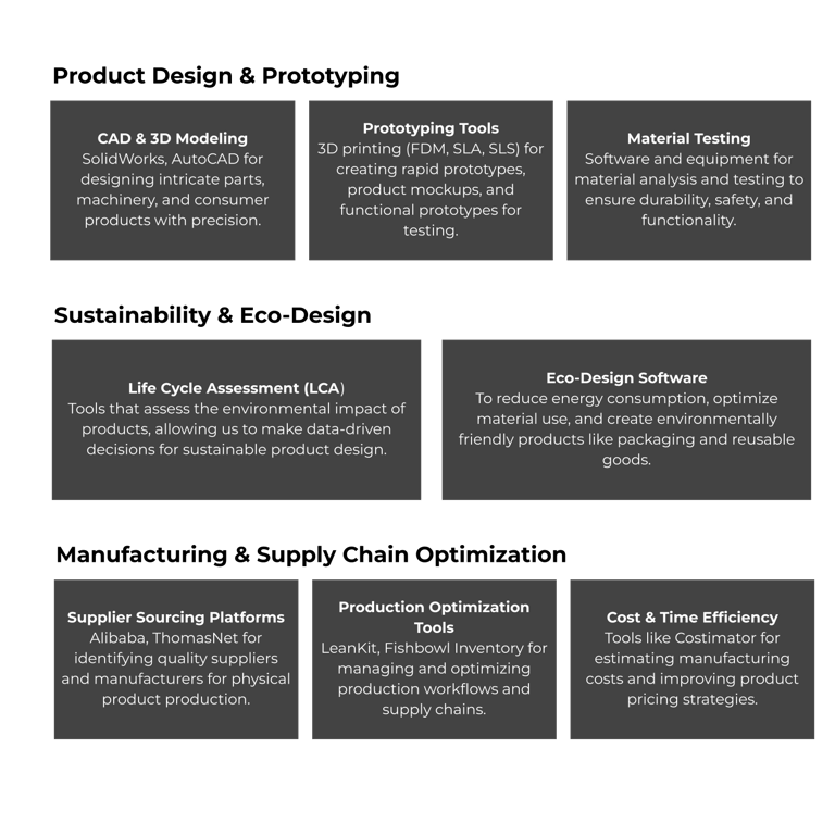 At Product Tavern, we leverage cutting-edge tools to bring ideas to life—whether it’s software, physical products, or a blend of both. Our approach ensures innovation, efficiency, and scalability at every stage of development.